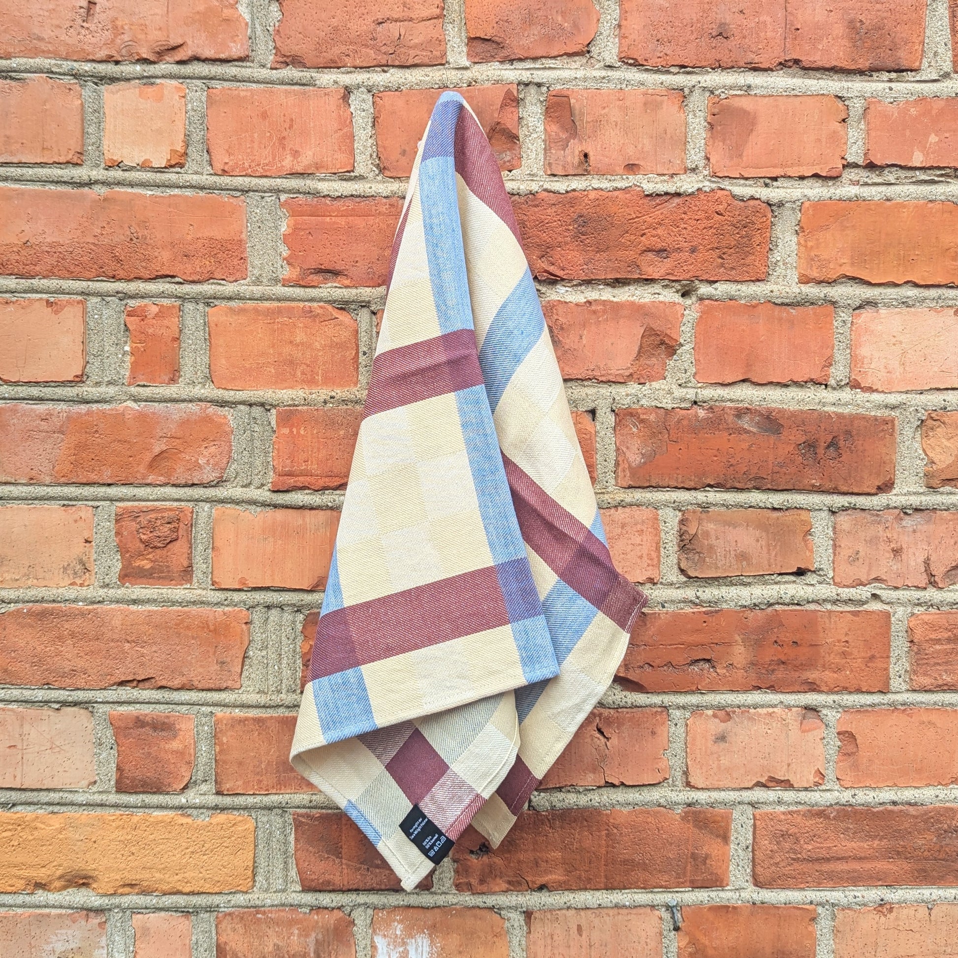 Kjøkkenhåndkle Åse #4 fra Solberg Spinderi. Mønstret er produsert i en stor bredde, slik at hvert av håndkledene blir unike. Åse består av 50 % lin og 50 % bomull.