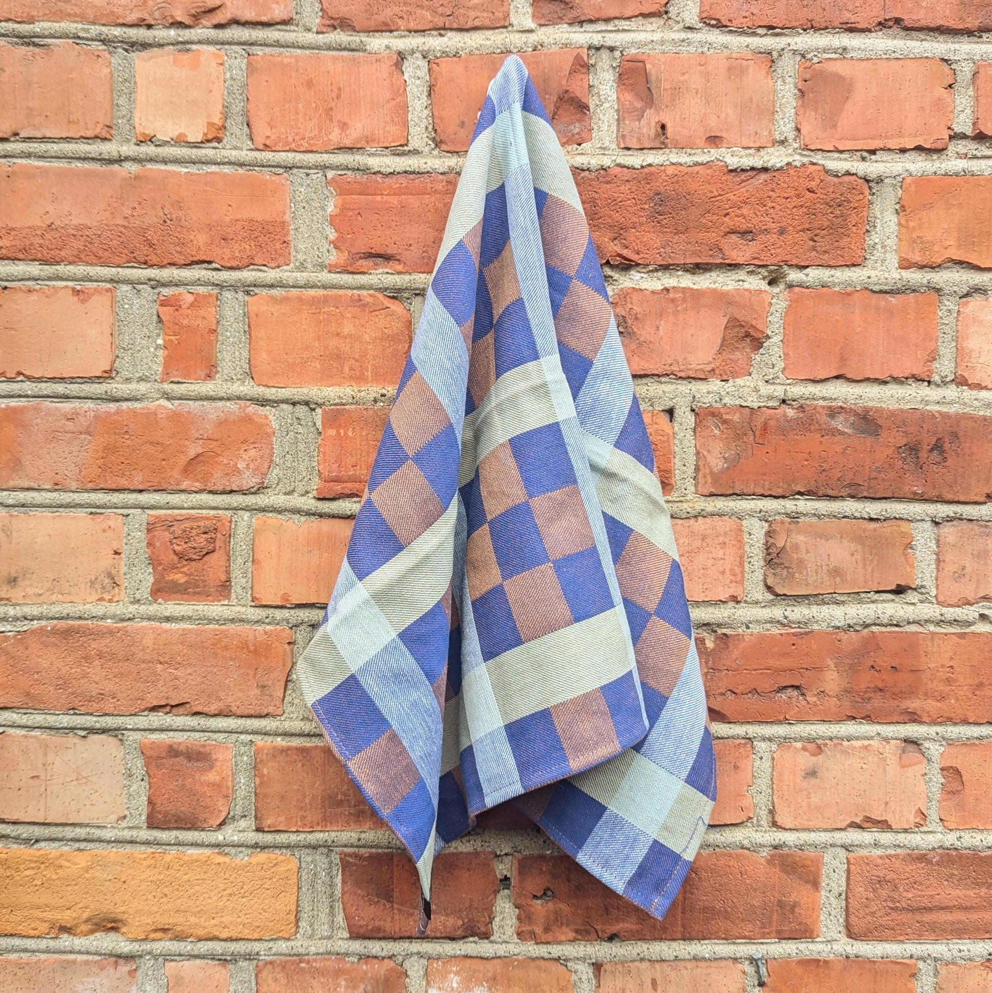 Kjøkkenhåndkle Åse #7 fra Solberg Spinderi. Mønstret er produsert i en stor bredde, slik at hvert av håndkledene blir unike. Åse består av 50 % lin og 50 % bomull.