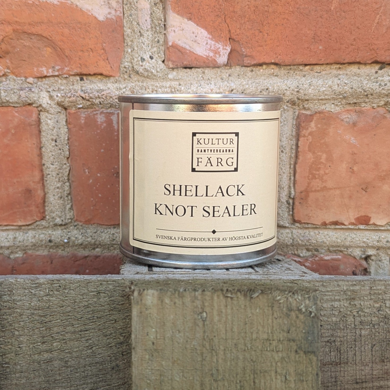 Denne kvistlakken er lagd på tradisjonelt vis på etanol og skall fra skjoldlus. Den har et høyt innehold av schellakkflak som stopper gjennomblødning effektivt.
