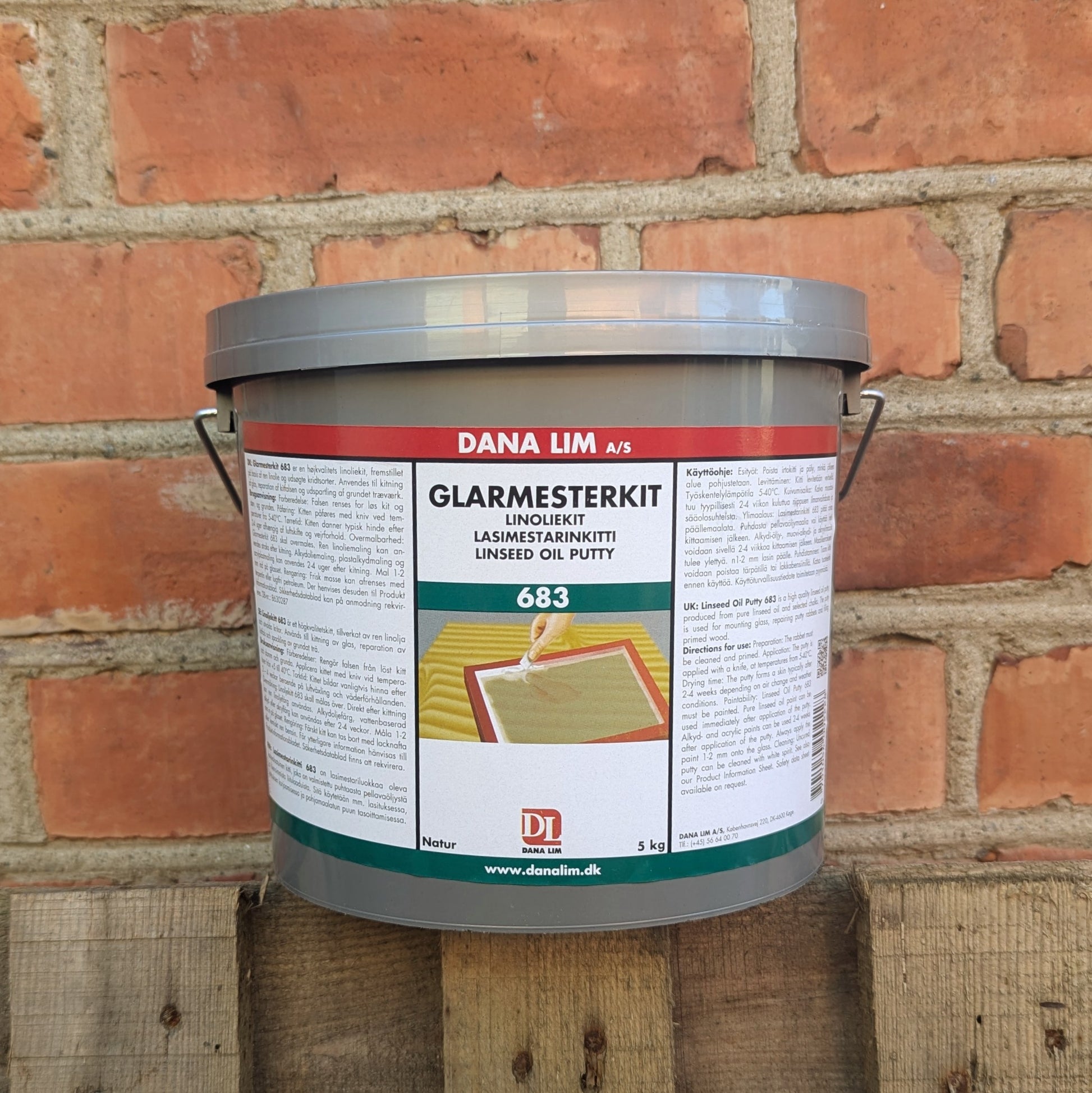 Glarmesterkit 683 er et linoljekitt laget av ren linolje og førsteklasses krittsorter.